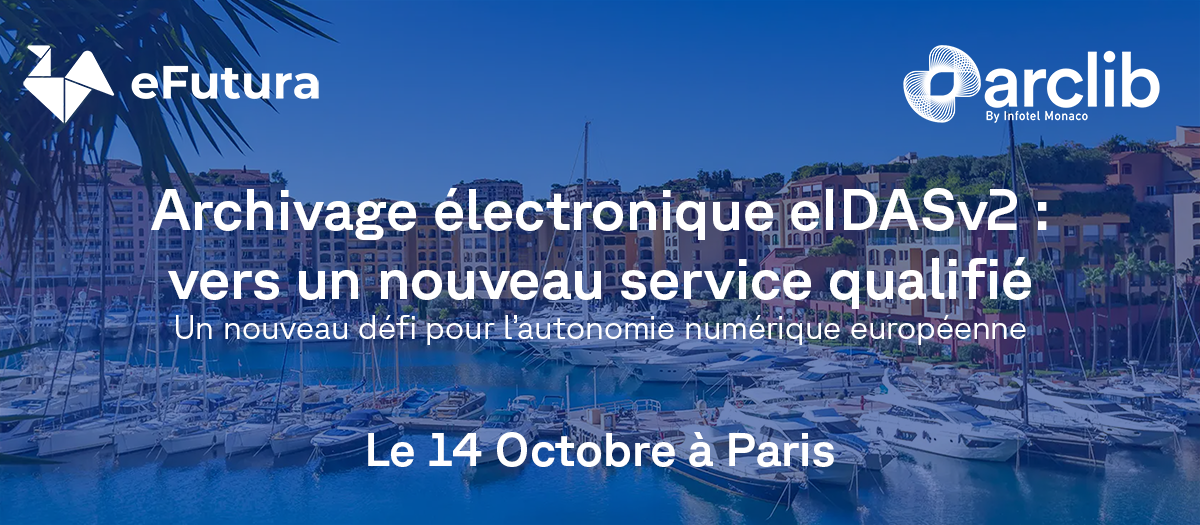 Arclib by Infotel a le plaisir d’annoncer sa participation à l’événement « eIDAS V2 & Archivage Électronique – Édition 2025 », organisé par eFutura, l’association professionnelle des acteurs du numérique et de la data, le 14 octobre 2025 à la Maison de l’Amérique Latine (217 Bd Saint-Germain, Paris 7e).